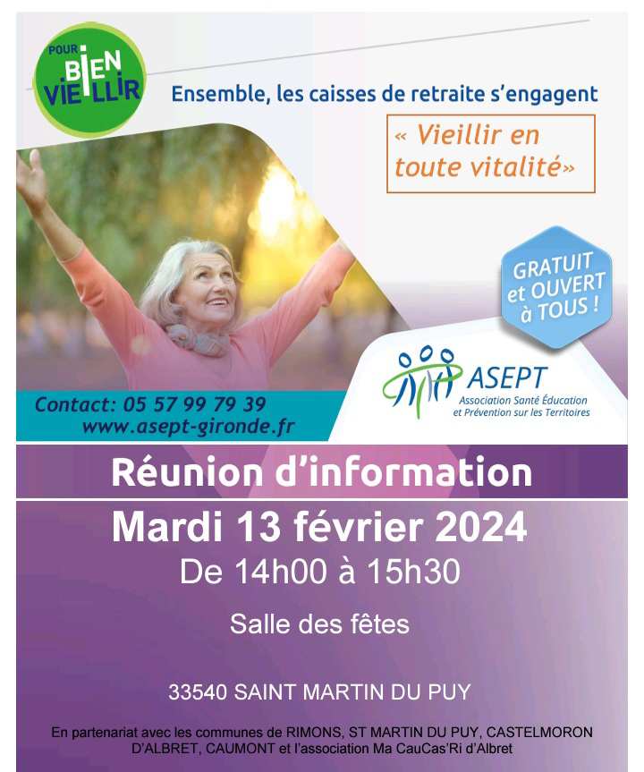 Réunion d’information ASEPT – Vieillir en toute vitalité